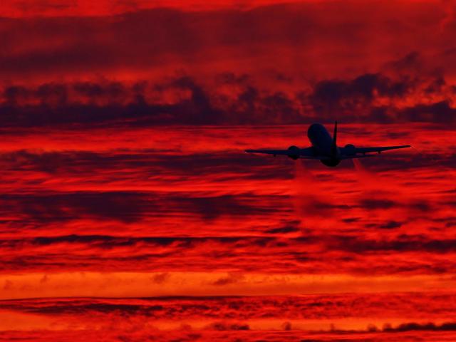Wallpaper The plane takes off at sunset