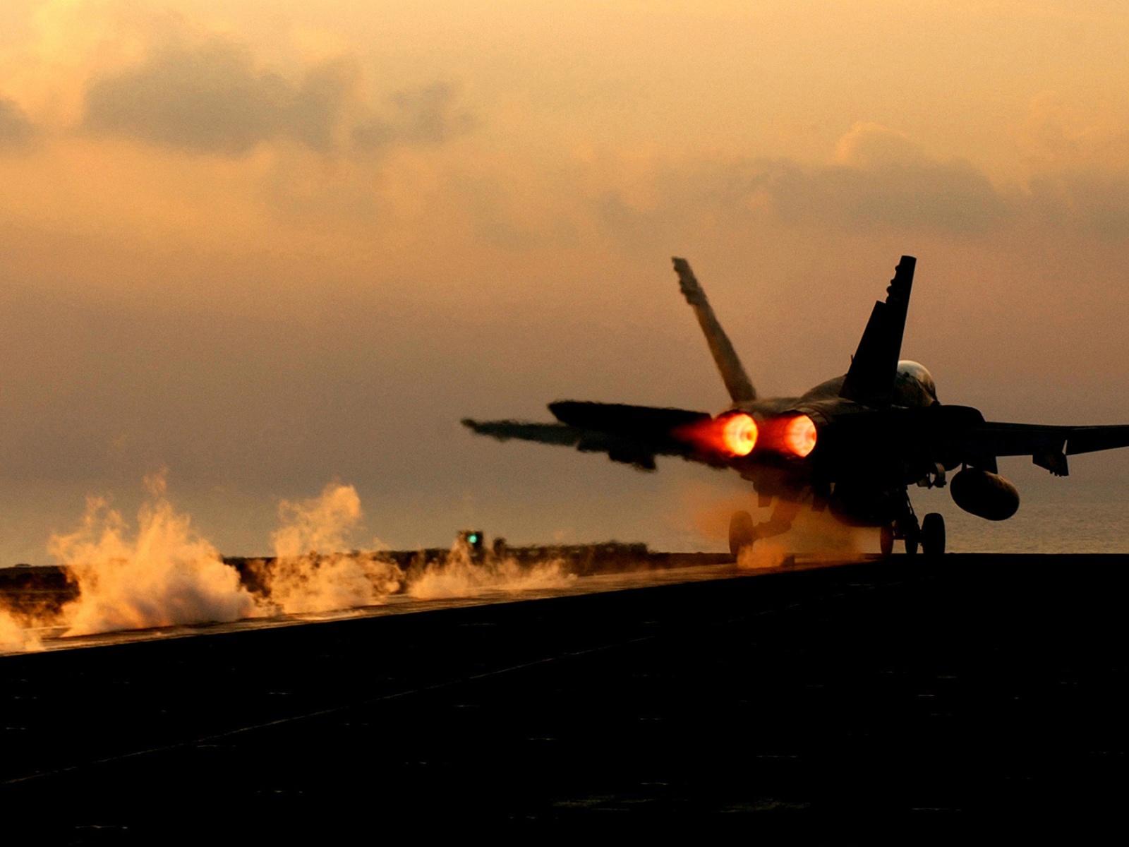 Wallpaper The plane f-18 takes off
