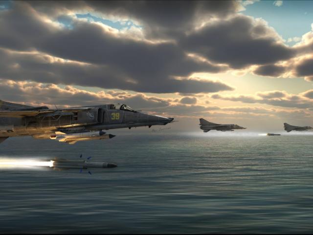 Wallpaper Fighter shot over the sea