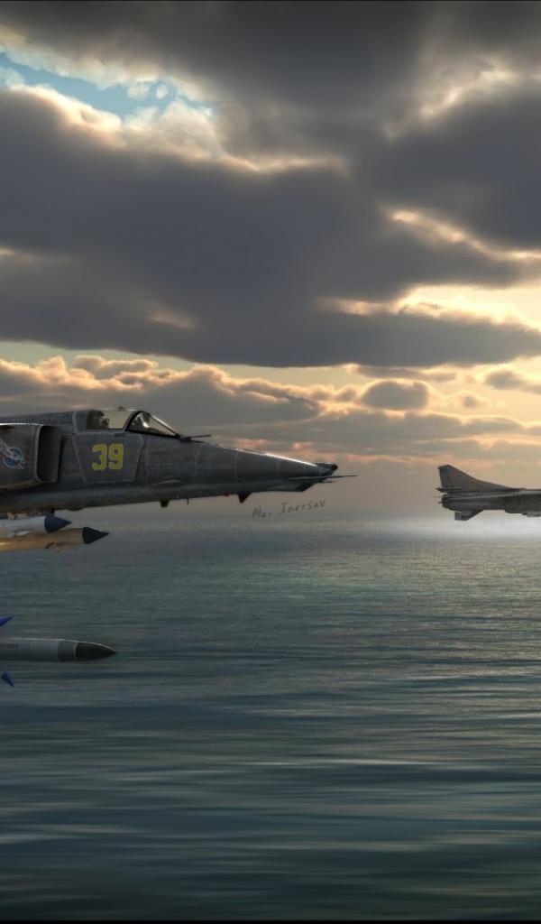 Wallpaper Fighter shot over the sea