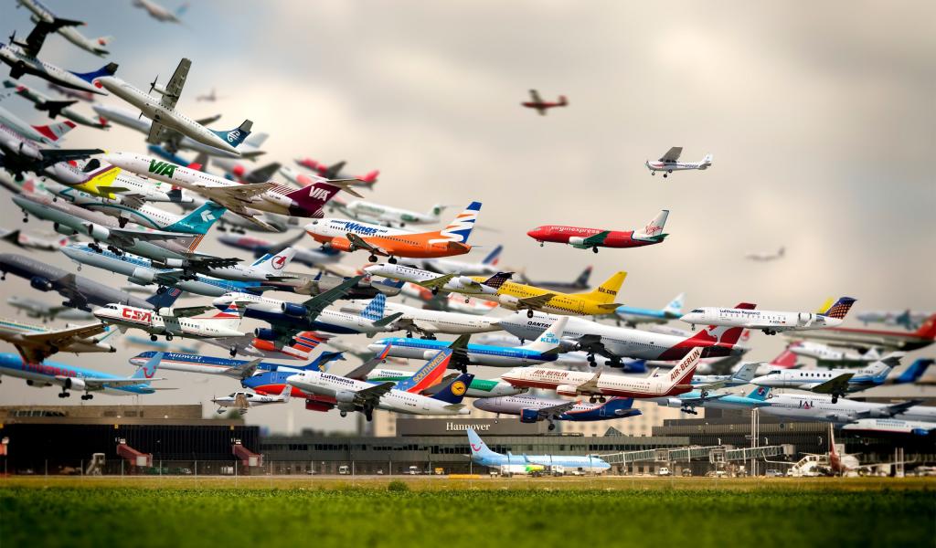 Wallpaper The takeoff of the aircraft at the airport