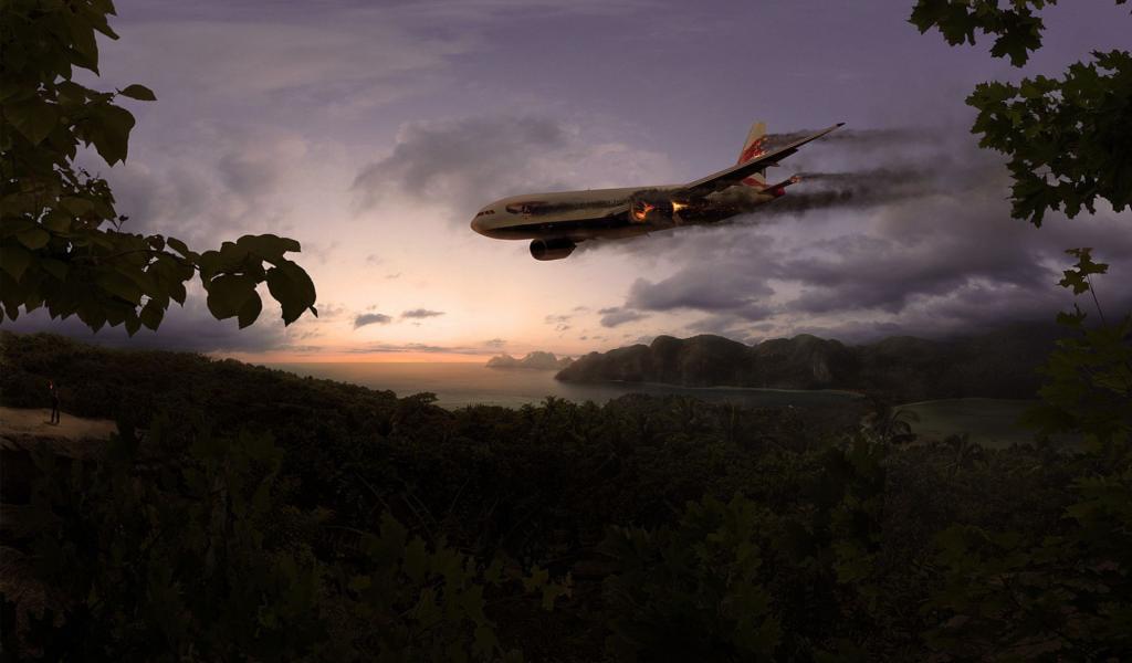 Wallpaper Burning plane is landing