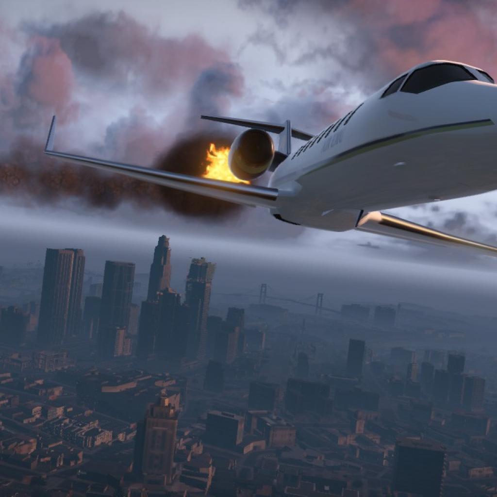 Wallpaper Aircraft fire over the city