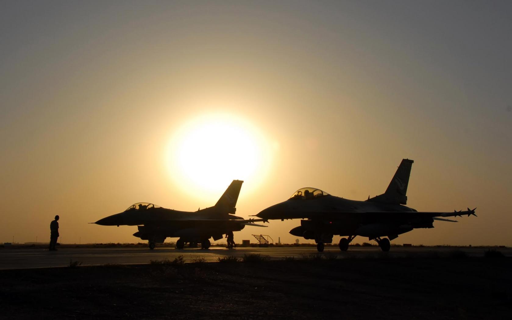 Wallpaper Military aircraft / fighter aircraft at sunset