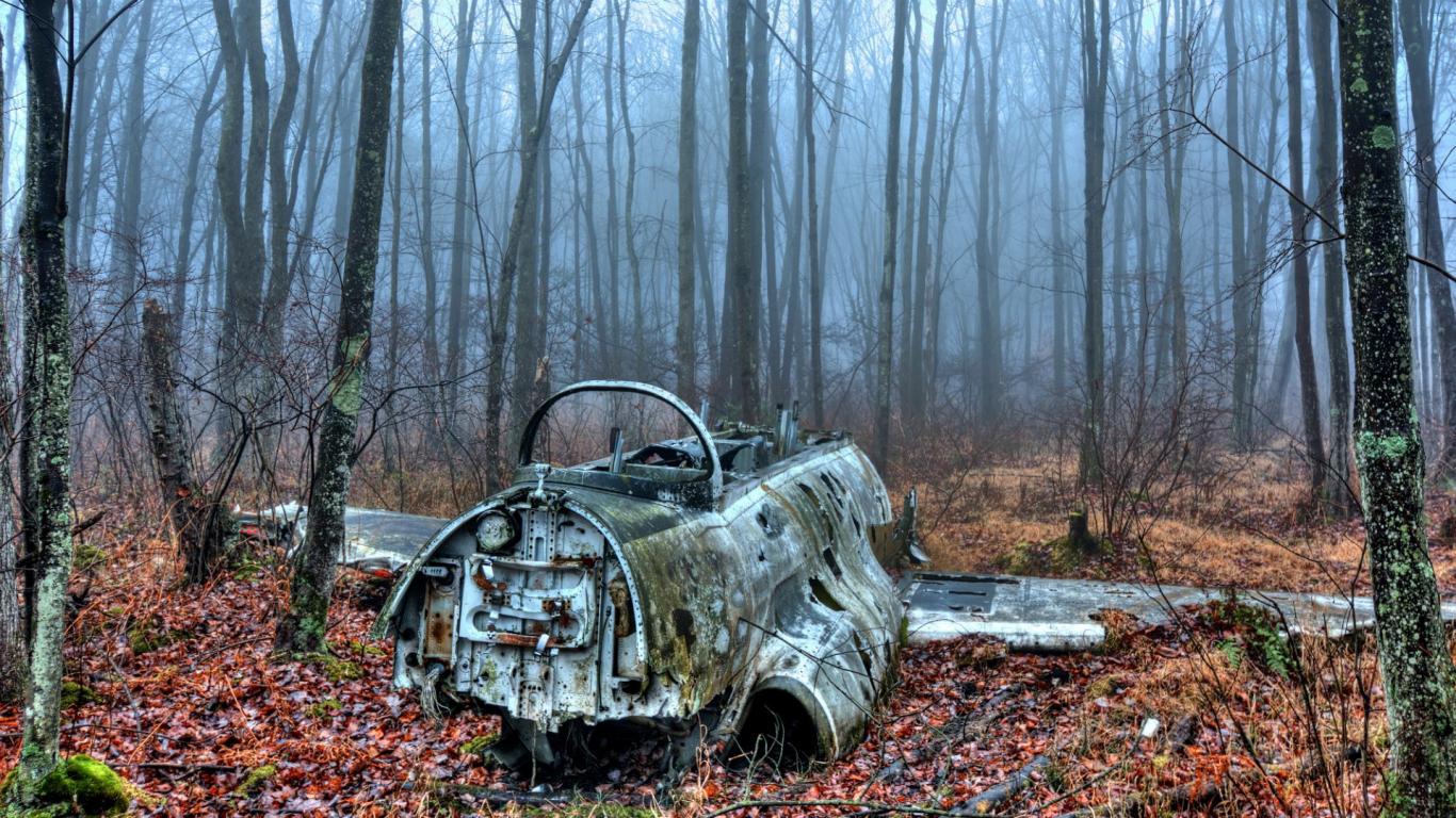 Wallpaper Wreckage in the forest