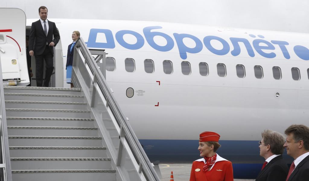 Wallpaper Medvedev on the airplane stairs Dobrolet