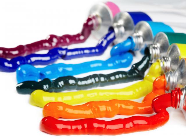 Wallpaper Tubes with a multi-coloured paint