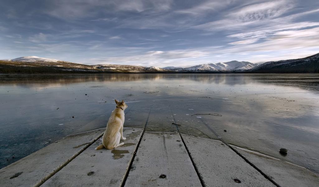 Wallpaper Dog staring at a lake