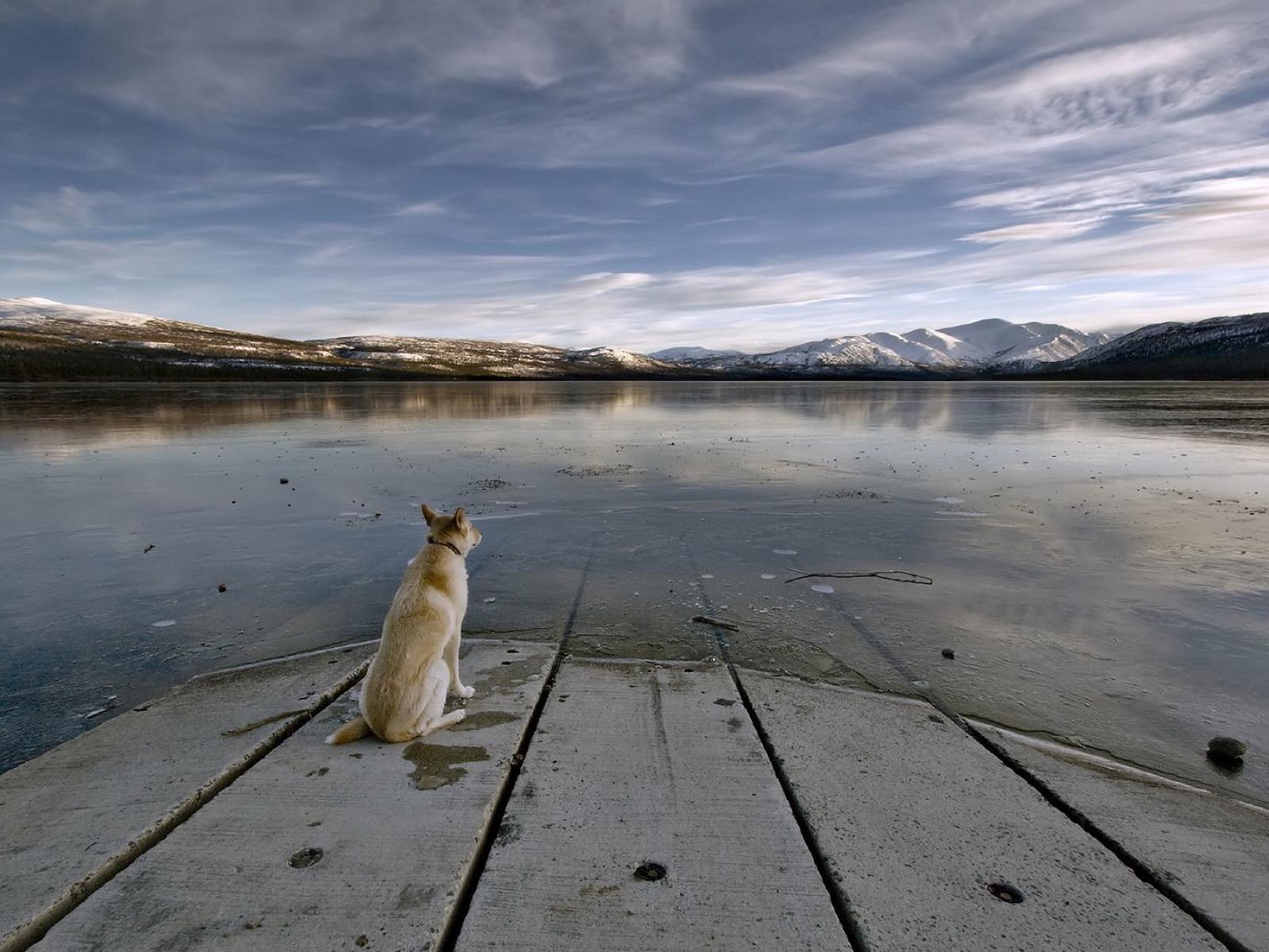 Wallpaper Dog staring at a lake