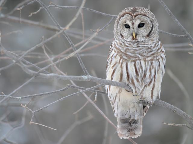 Wallpaper Grey owl in a tree