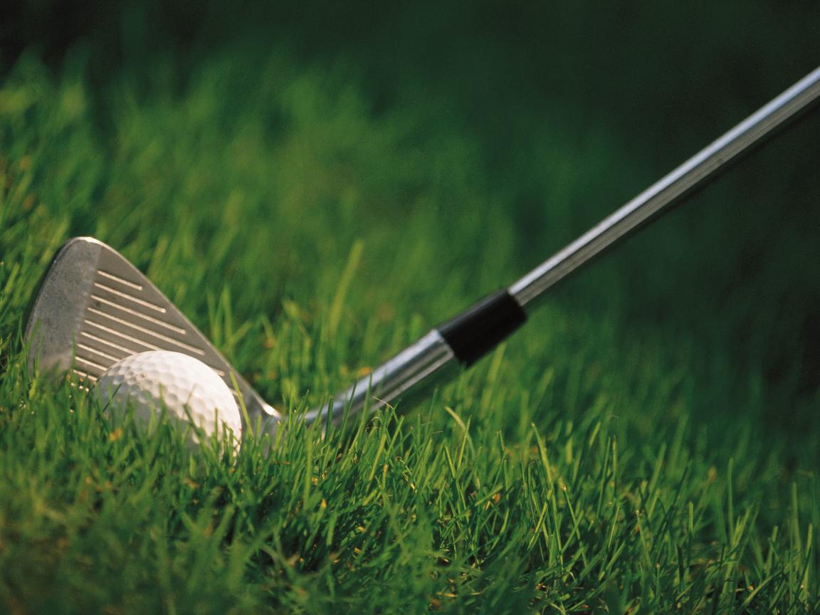 Wallpaper Putter and golf ball on the green grass