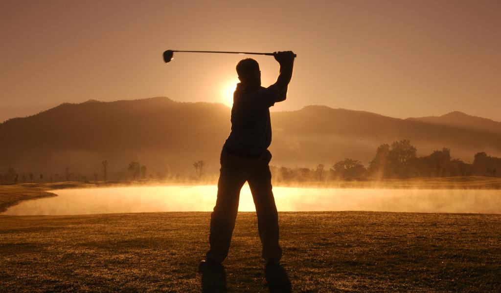 » Wallpaper Man playing golf at sunset