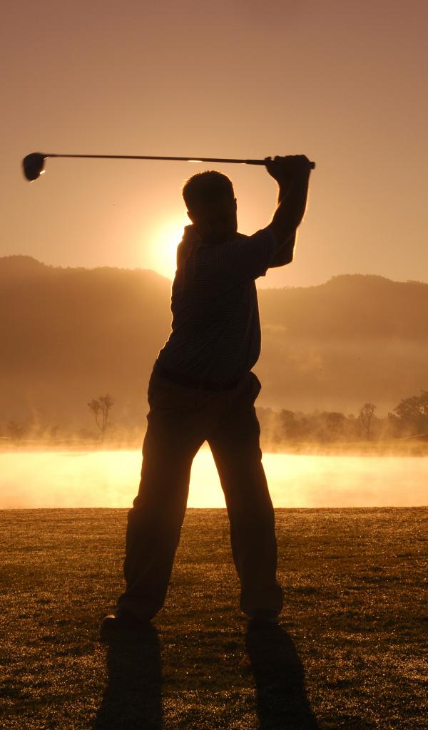 Wallpaper Man playing golf at sunset