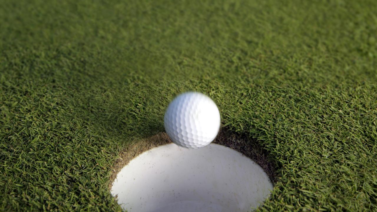 Wallpaper Golf ball falls into the hole