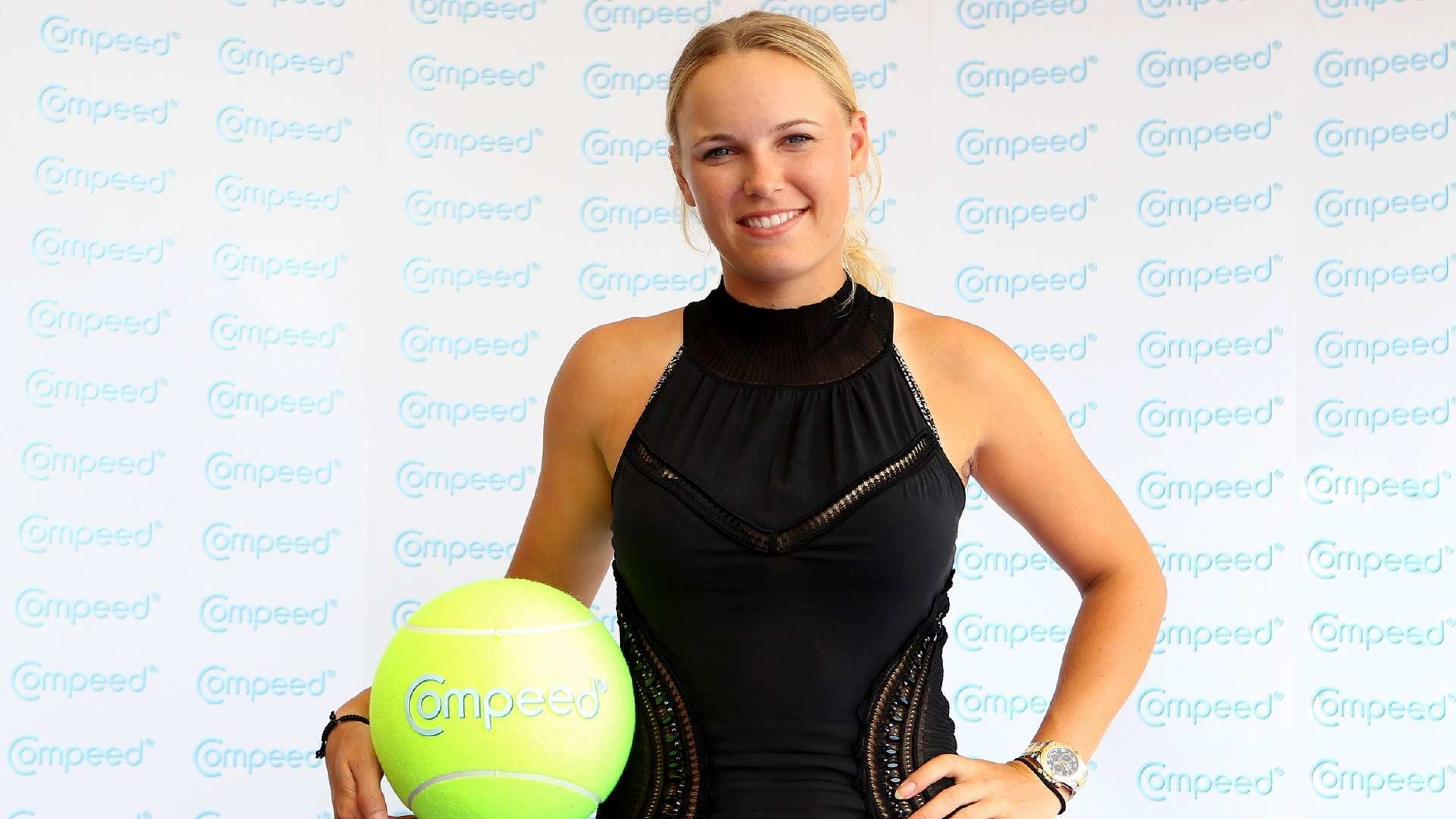 Wallpaper Tennis player Caroline Wozniacki in a black dress