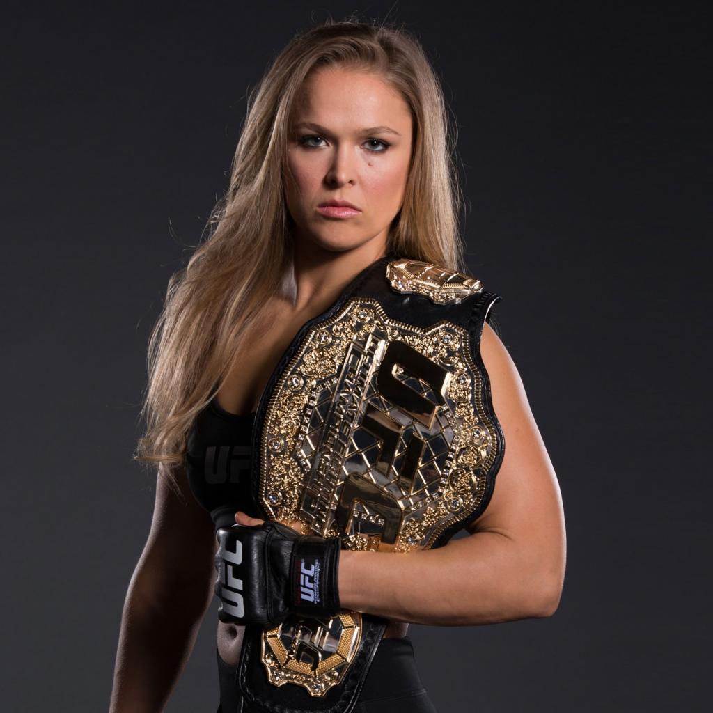 Wallpaper American fighter MMA, actress Ronda Rosie with belt champion UFC