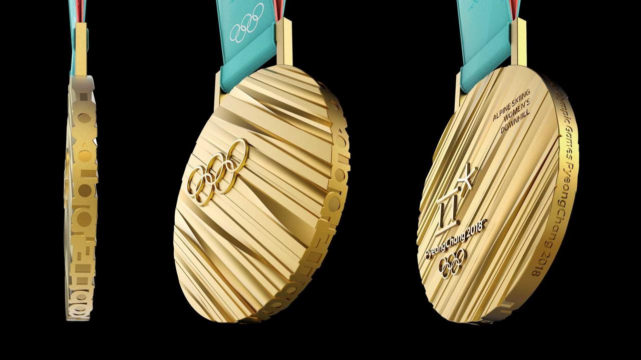 Wallpaper Gold medal of the 2018 Winter Olympics on a black background
