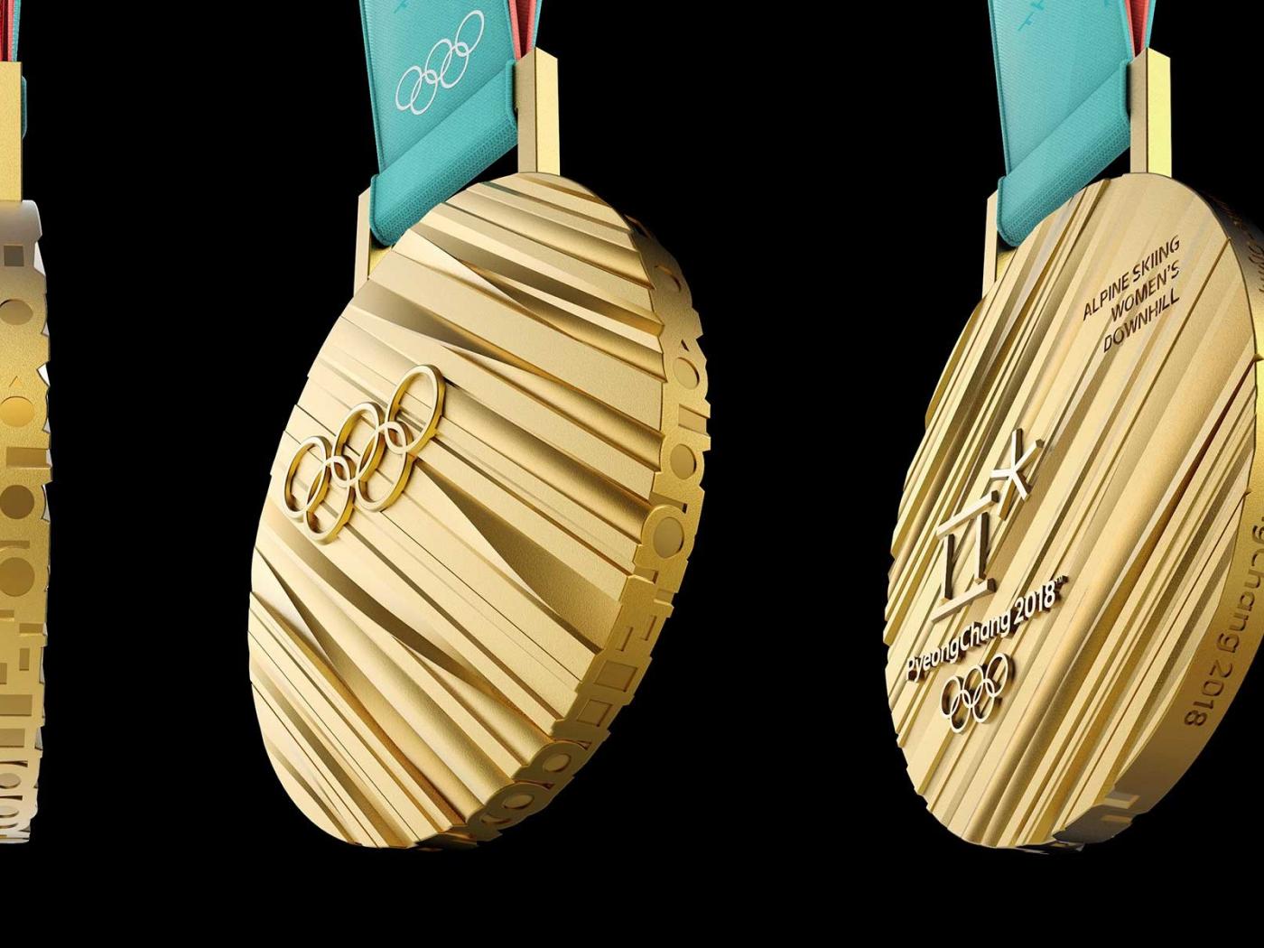 Wallpaper Gold medal of the 2018 Winter Olympics on a black background