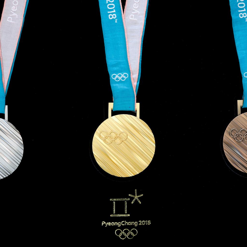Wallpaper Three medals of the 2018 Winter Olympics on a black background