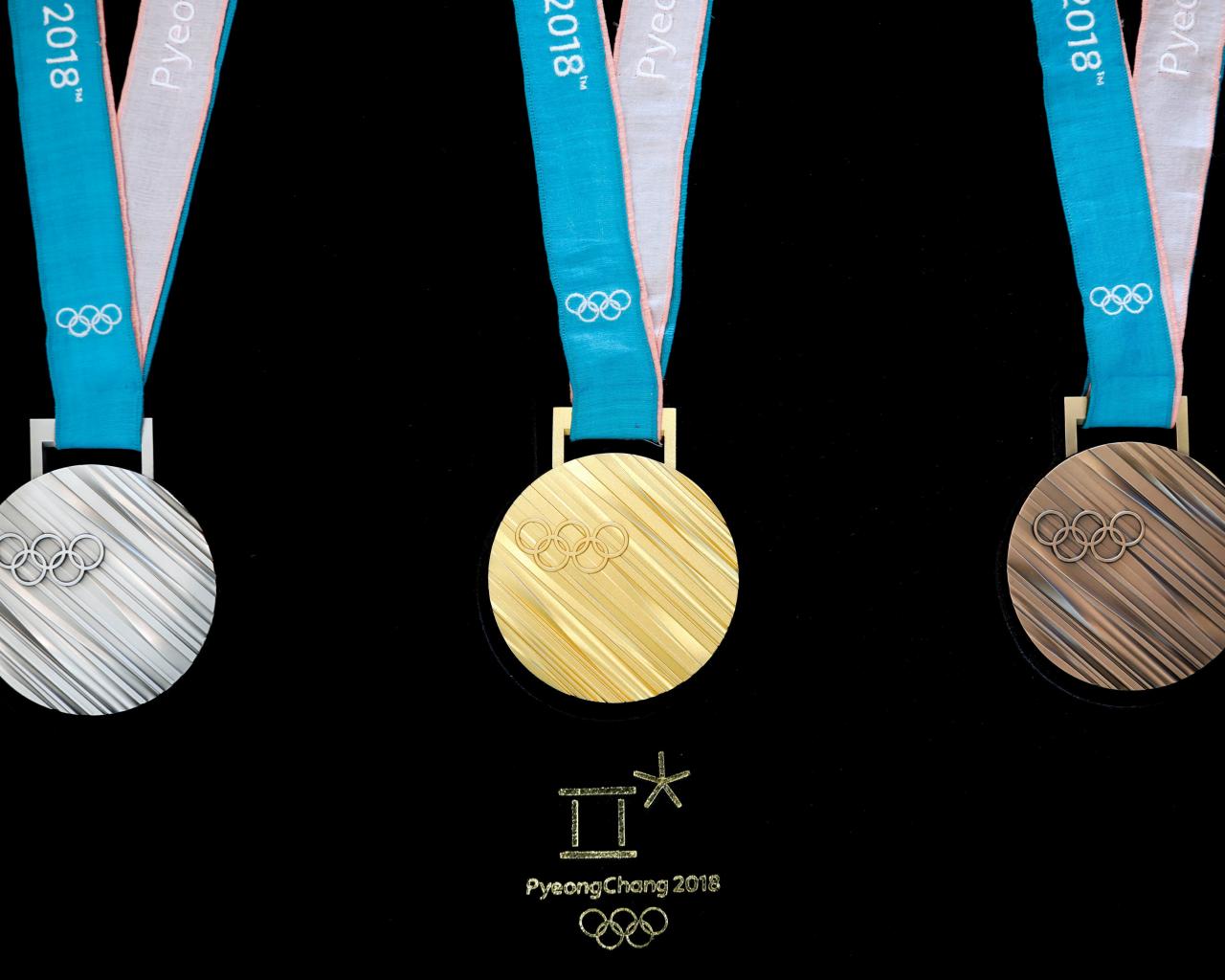 Wallpaper Three medals of the 2018 Winter Olympics on a black background