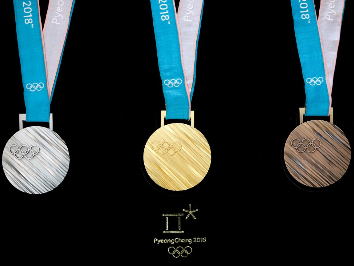 Wallpaper Three medals of the 2018 Winter Olympics on a black background