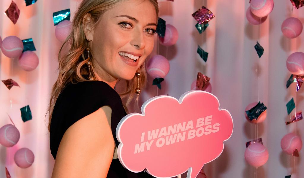 Wallpaper Tennis player Maria Sharapova holding a sign in her hands on a pink background