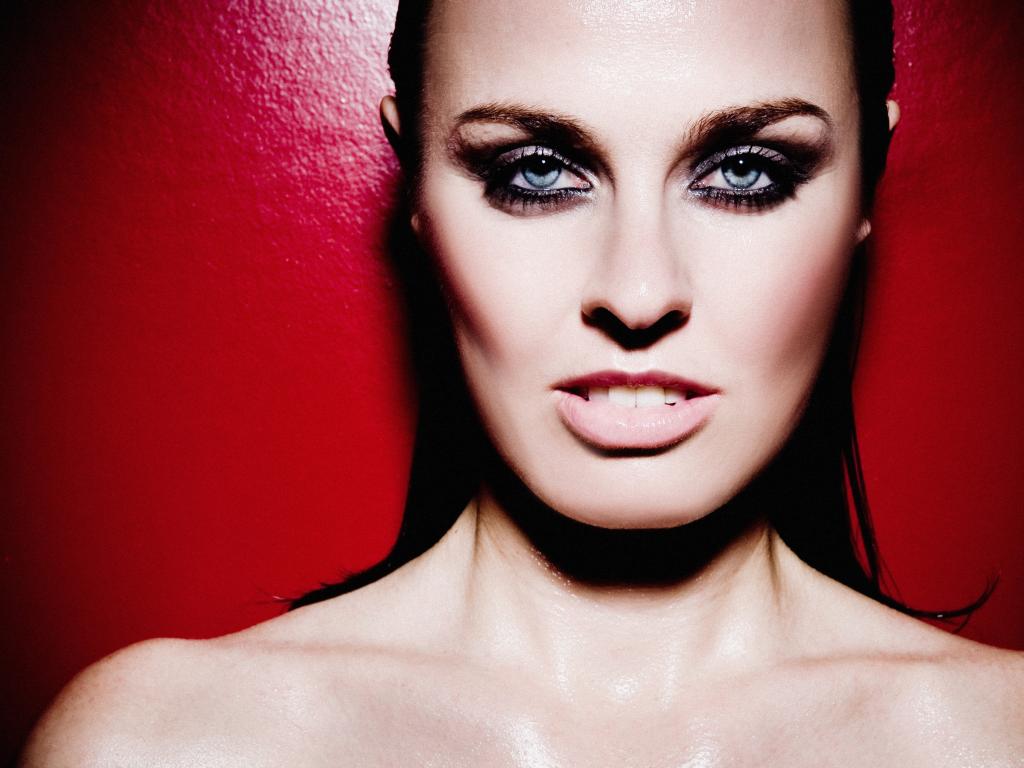 Wallpaper Beautiful bright girl tennis player Martina Hingis on a red background