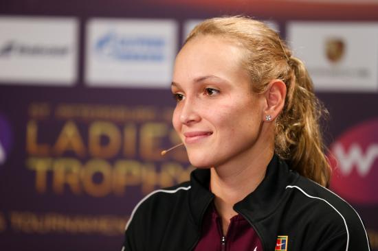 Wallpaper Croatian tennis player Donna Vekic with a microphone