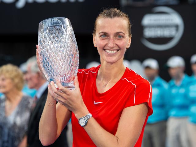Wallpaper Czech tennis player Petra Kvitova with a cup on the court