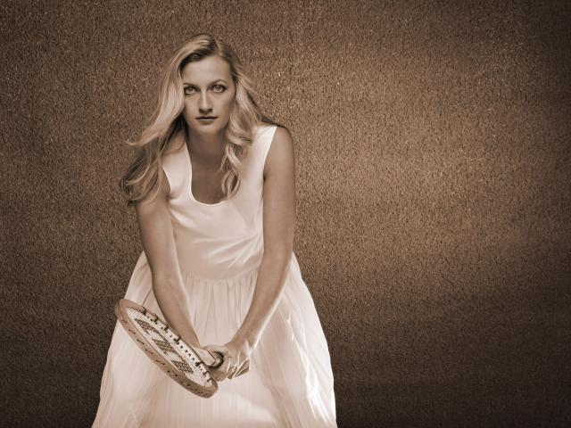 Wallpaper Tennis player Petra Kvitova in a white dress with a racket