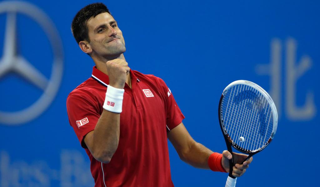 Wallpaper Tennis player Novak Djokovic with a racket rejoices on the court