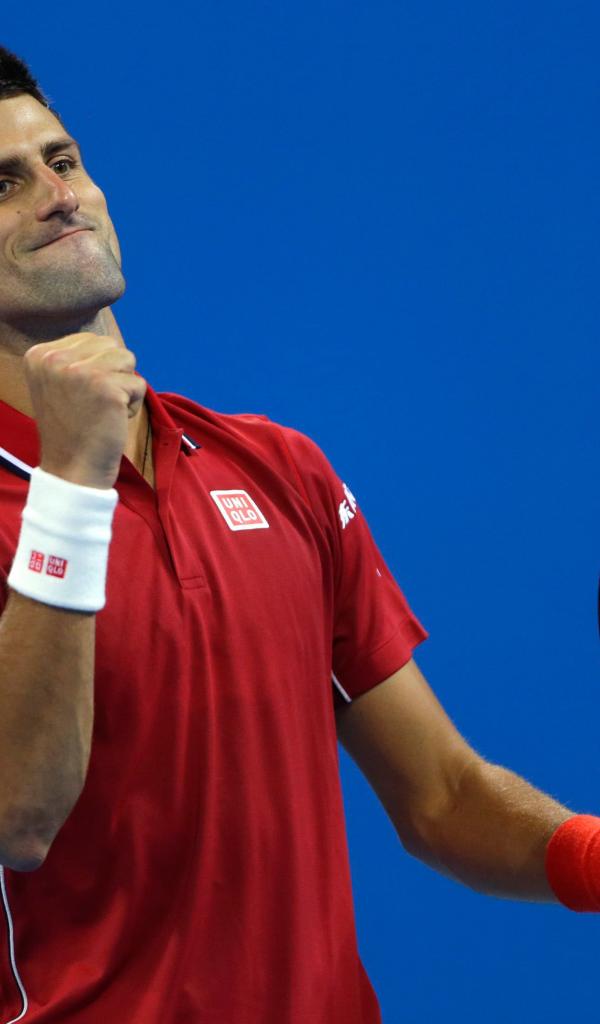 Wallpaper Tennis player Novak Djokovic with a racket rejoices on the court