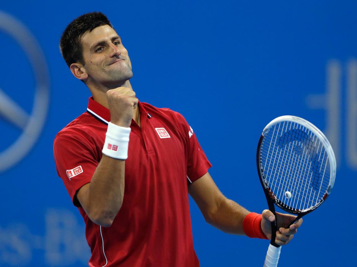 Wallpaper Tennis player Novak Djokovic with a racket rejoices on the court