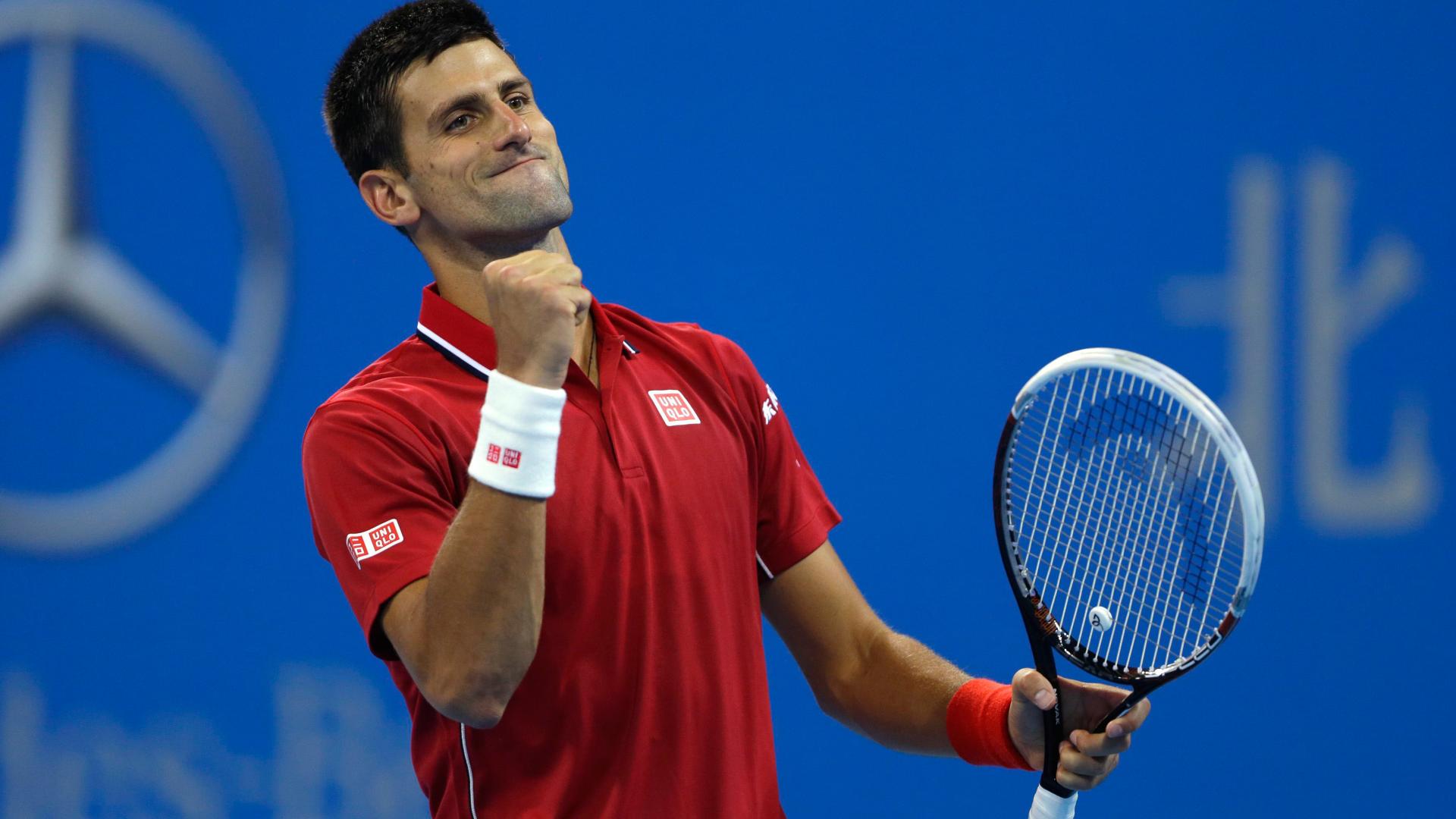 Wallpaper Tennis player Novak Djokovic with a racket rejoices on the court