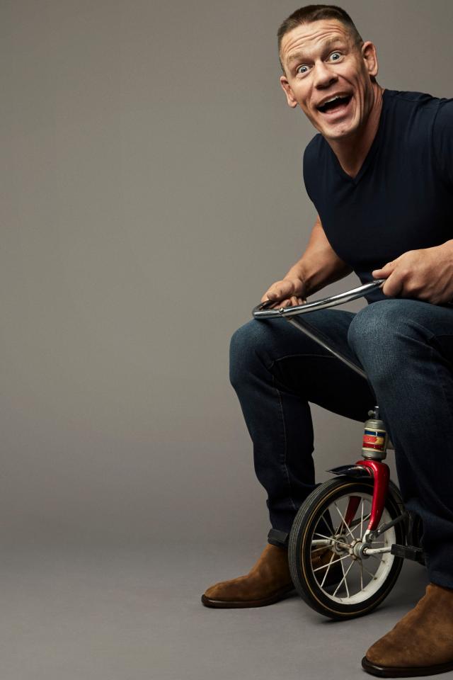 Wallpaper American wrestler John Cena on a children`s bike