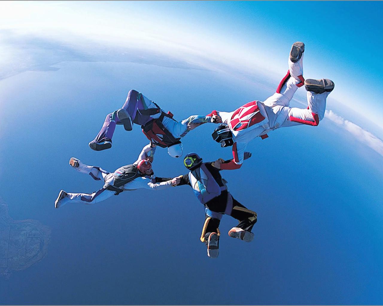 Wallpaper Four skydivers in the air