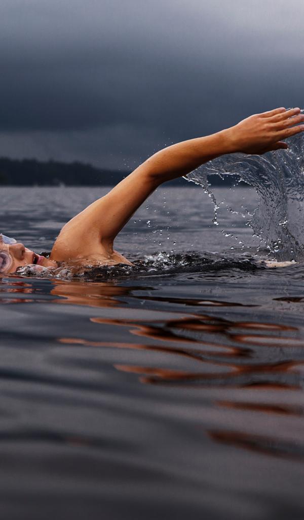 Wallpaper Male swimmer in the lake water
