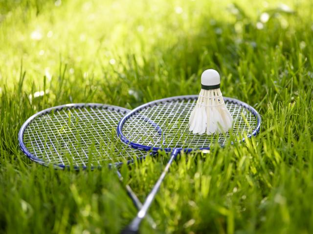 Wallpaper Shuttlecock and badminton rackets on green grass