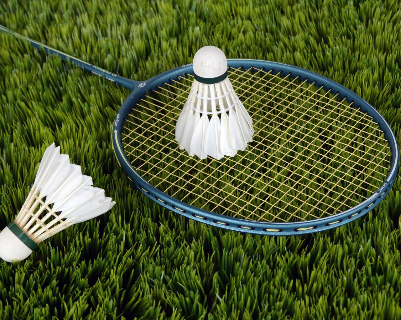 Wallpaper Shuttlecock and badminton rackets on green grass