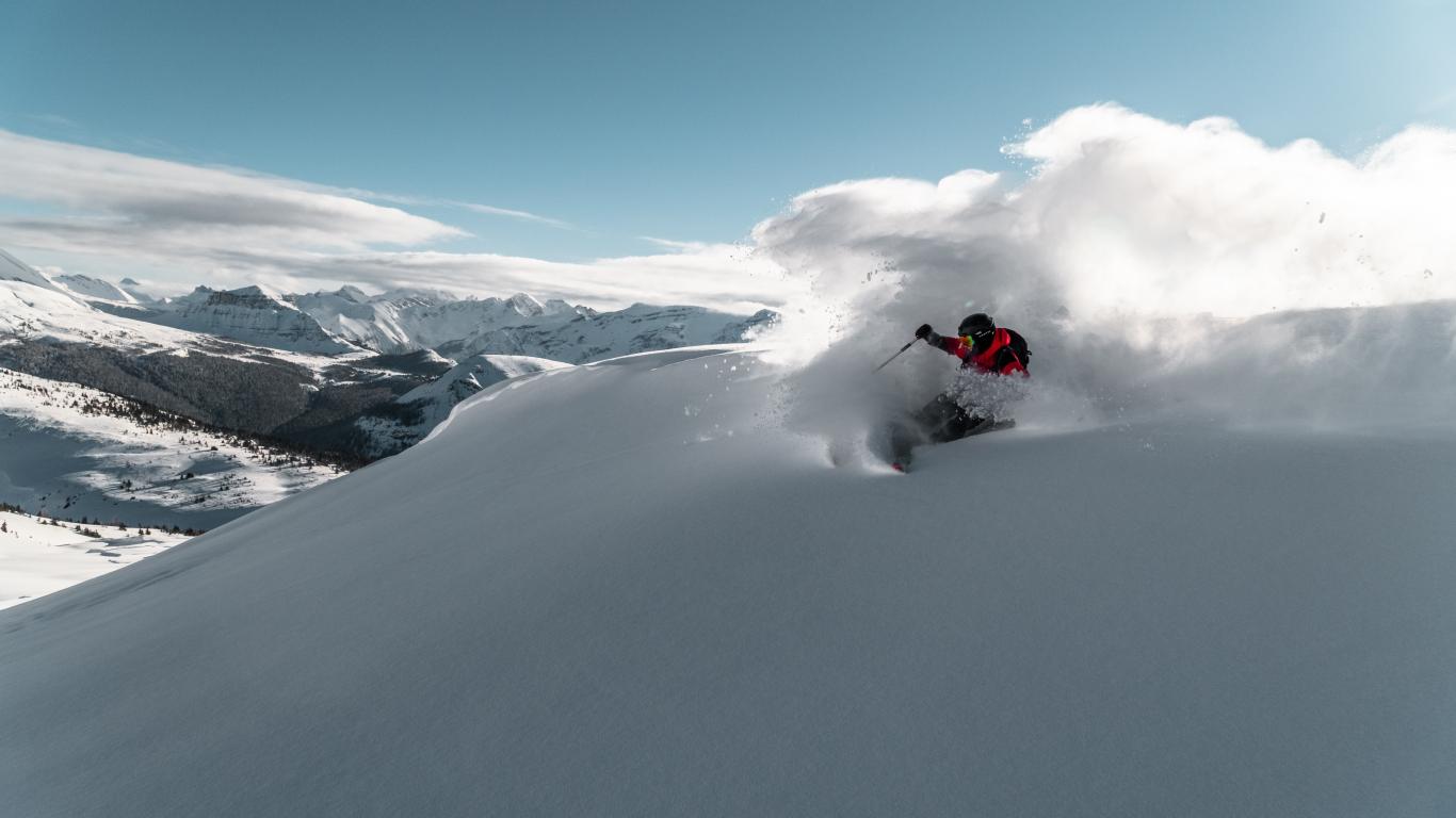 Wallpaper A man skiing down a mountain