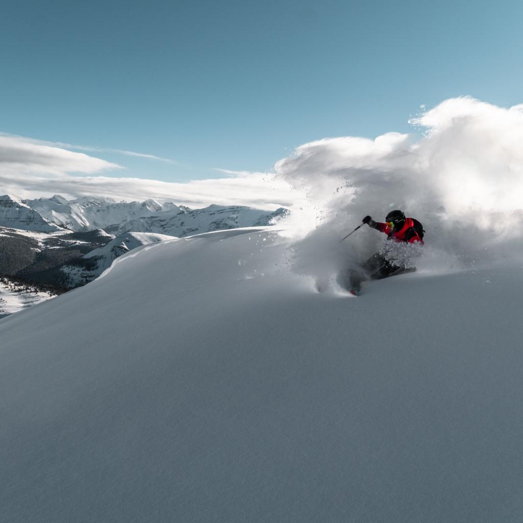 Wallpaper Young guy skiing on a snowy mountain in the rays of the sun