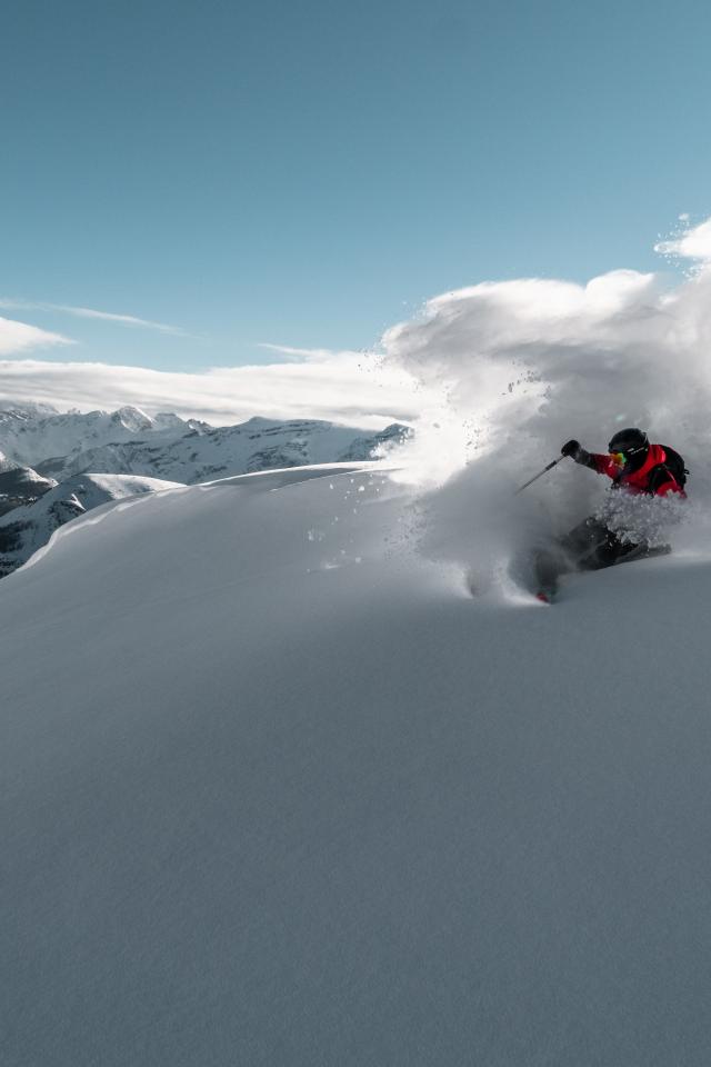 Wallpaper Young guy skiing on a snowy mountain in the rays of the sun
