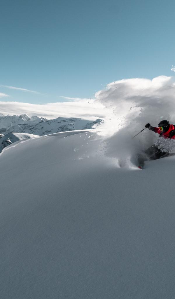 Wallpaper A man skiing down a mountain