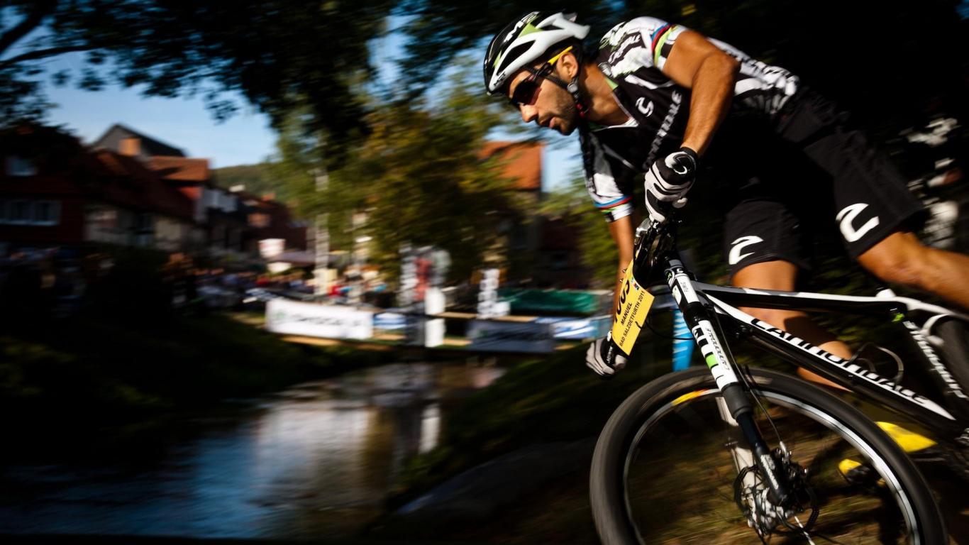 Wallpaper Cyclist on the edge of the pond