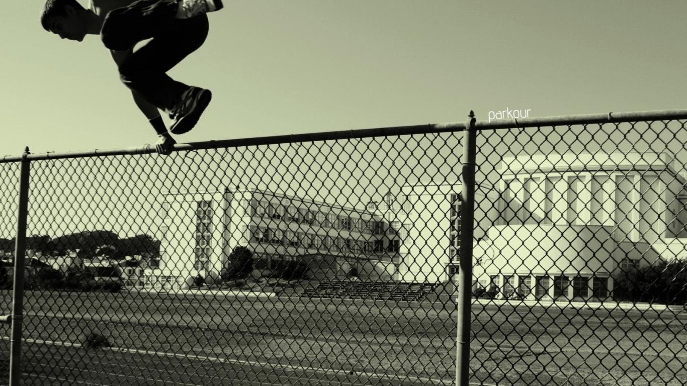 » Wallpaper Parkurschik jumping over the fence