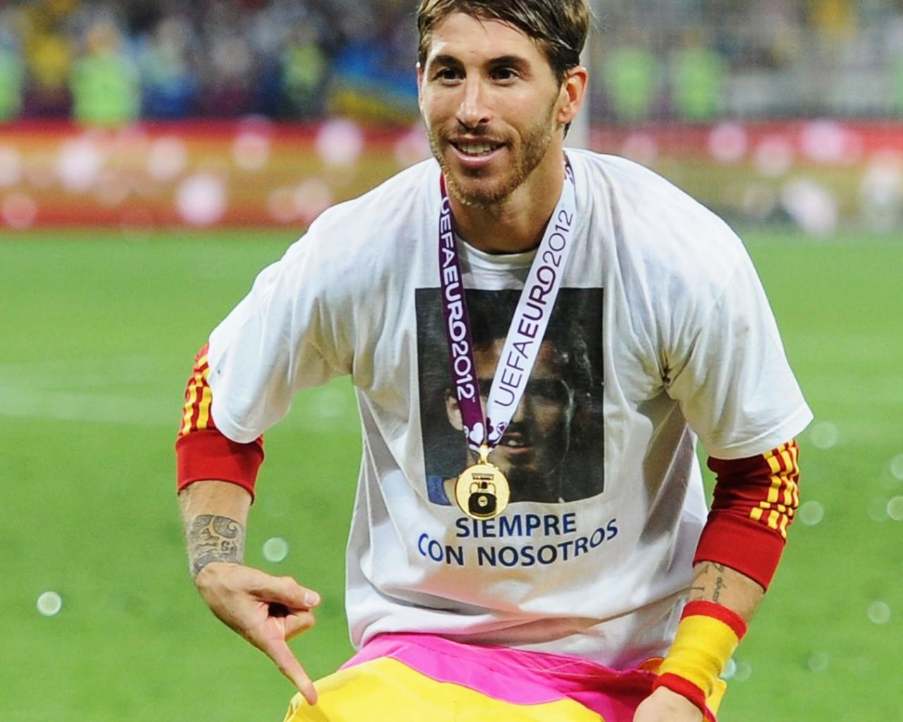 Wallpaper The player of Real Madrid Sergio Ramos won a golden medal