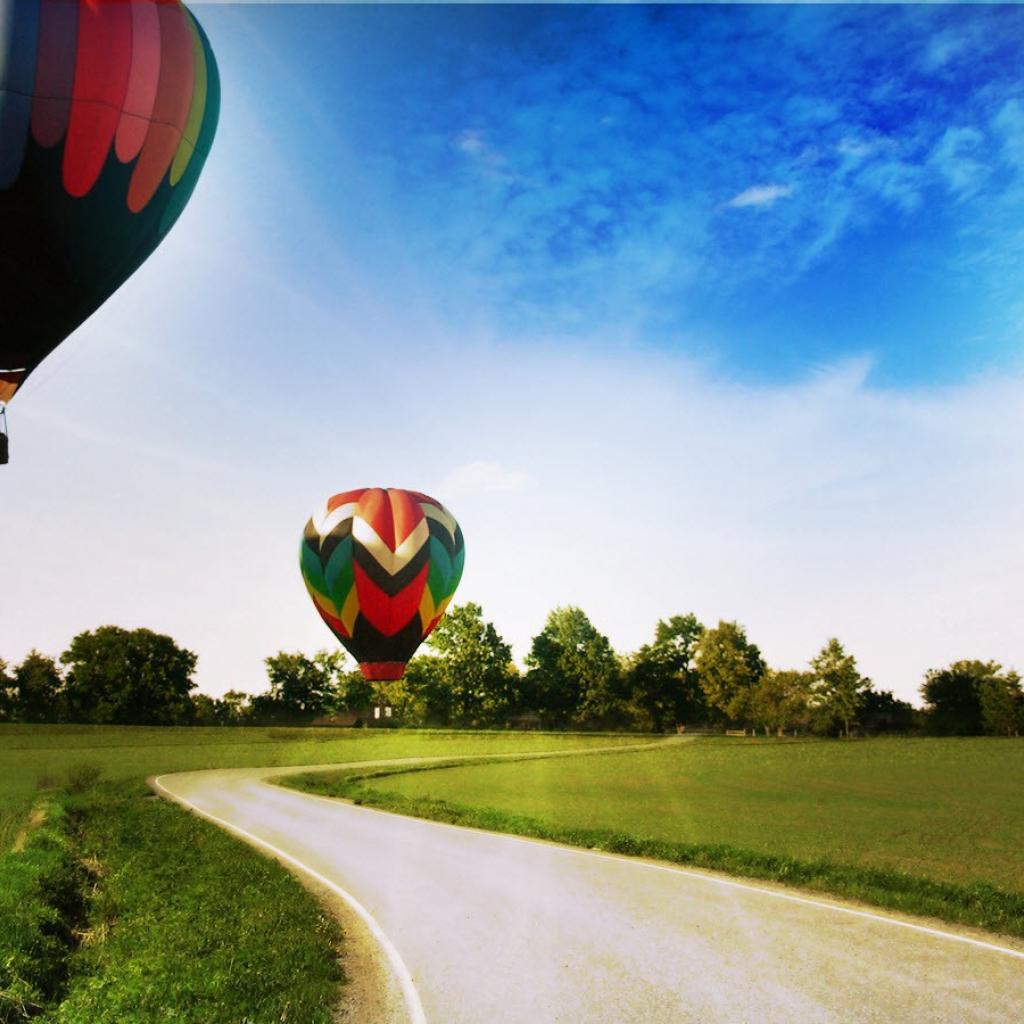 Wallpaper Balloon flight over the road