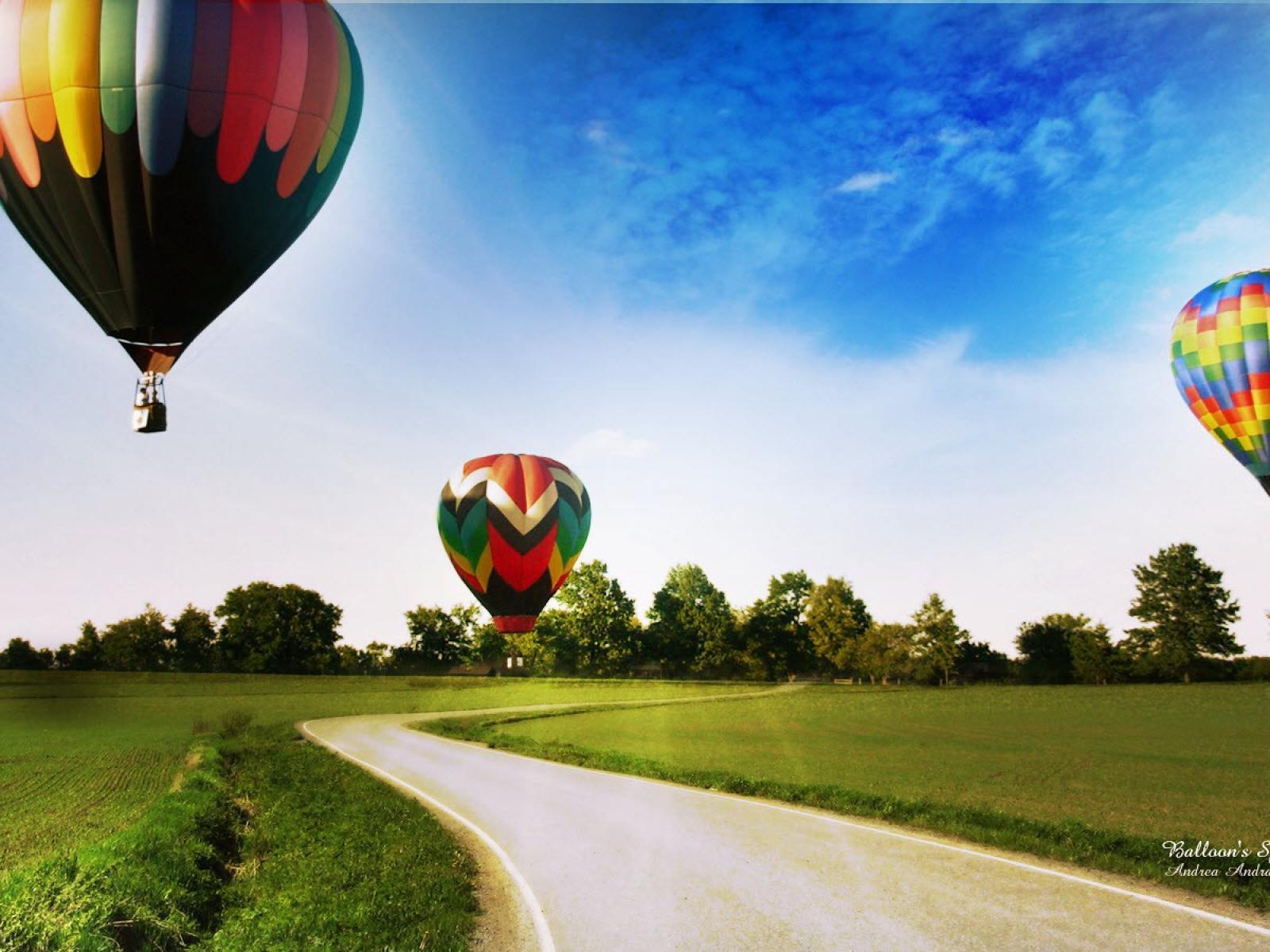 Wallpaper Balloon flight over the road