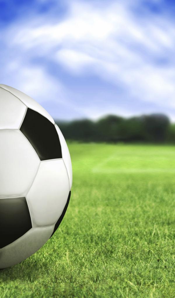 Wallpaper Green grass, Blue sky, Soccer ball, Soccer field