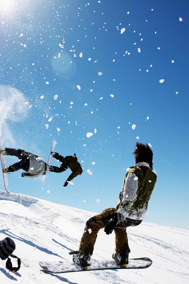 Wallpaper Snowboarders in mountains